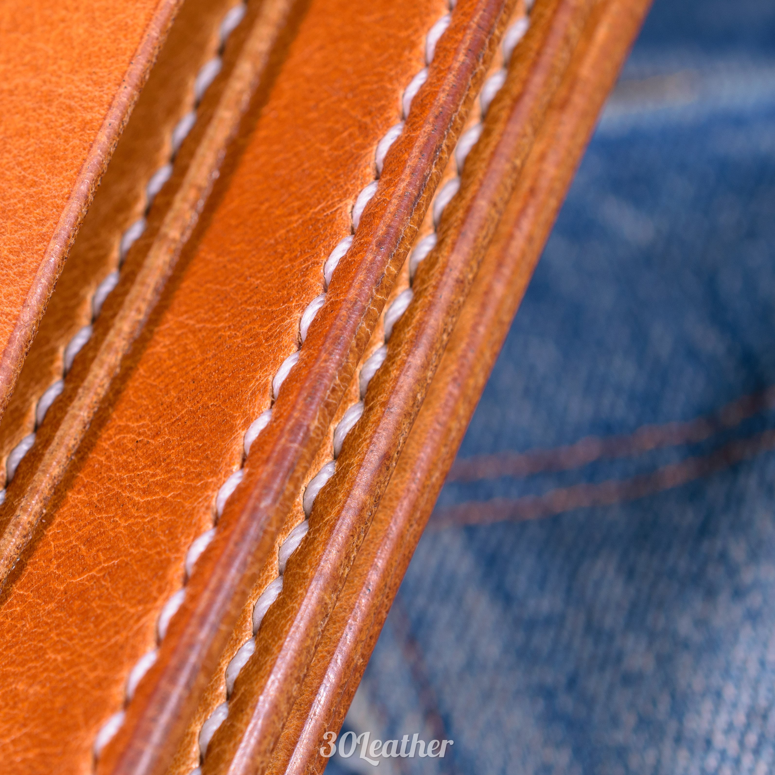 染料染めの革にツヤ加工が施されており、非常に豊かな表情を持っています。